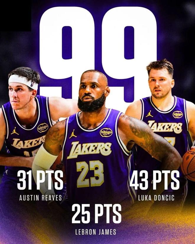 其中对阵快船的同城德比,詹姆斯还拿到了25分6篮板6助攻,三人同场轰下99分,现役有多少三人组能有这种恐怖火力?