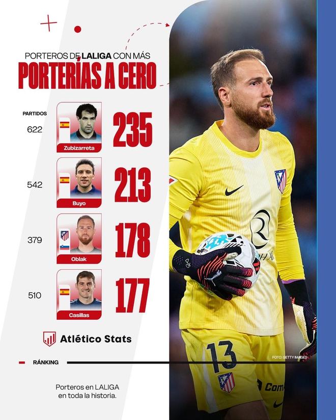 西甲官方也对这位斯洛文尼亚门将送上了祝福。目前在西甲联赛总零封榜上,奥布拉克以178场零封的数据排名第三,零封率为47%。排名在他身前的分别为传奇门将苏比萨雷塔与帕科-布约。